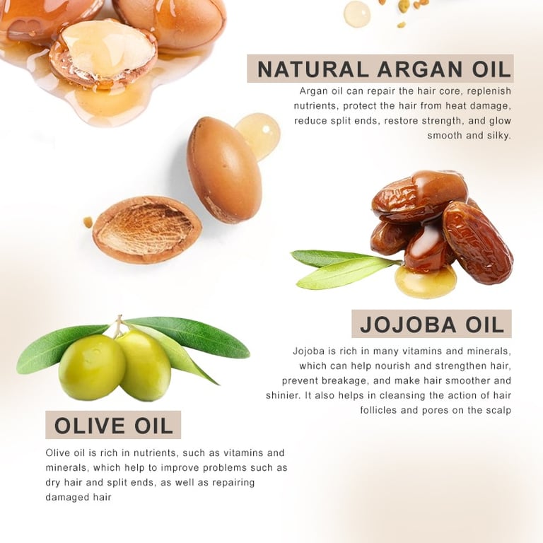 Rich in antioxidants and essential fatty acids, olive oil enhances softness and flexibility while protecting hair integrity.